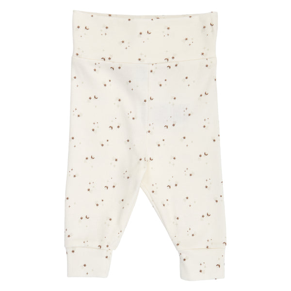 Deilige, myke ribbebukser for de minste. Nydelig heldekkende stjernetrykk. Buksene har en bred og elastisk kant øverst som kan brettes etter behov og stil.