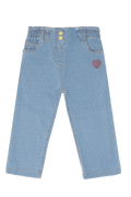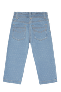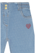 Buksen har et klassisk denimuttrykk med et lekent Dotty-detaljmønster, som gir plagget et ekstra sjarmerende preg uten å bli for prangende. Den elastiske kvaliteten gjør den enkel å ta på og komfortabel å bruke – perfekt for barnehage, skole og fritid.