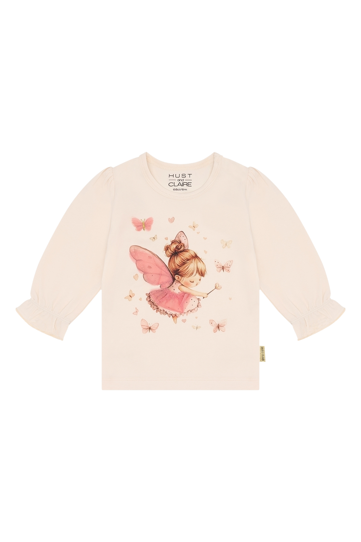 Hust & Claire genser til barn i myk, økologisk bomull. Genseren har stort print foran og myk strikk rundt mansjettene.