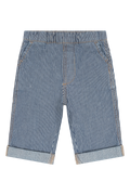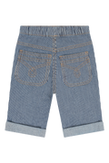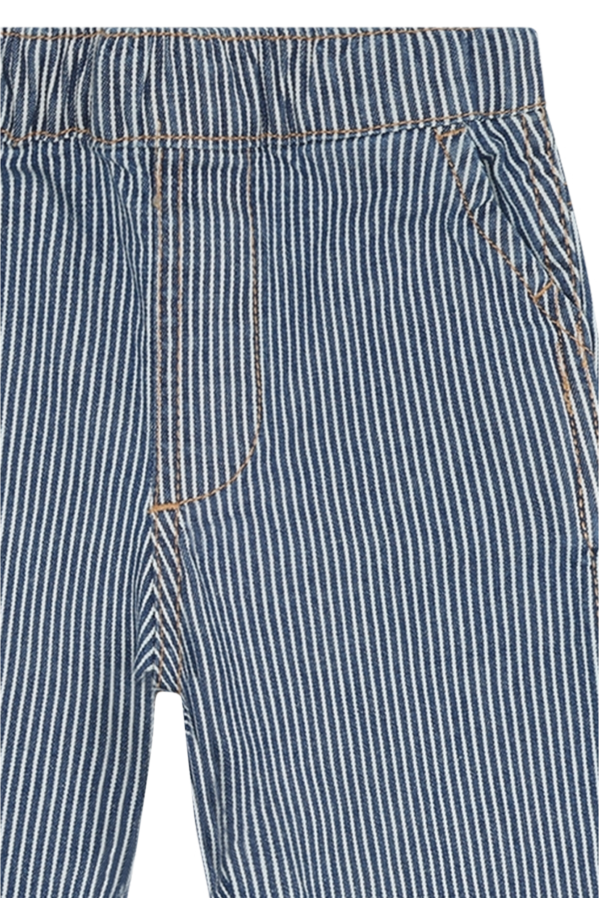 Stilige Hust and Claire jeans i marineblå med smale, hvite striper. Jeansene har elastisk midje som kan justeres med knapper innsiden. Det er praktiske lommer for og bak, og det er fine oppbrett ved anklene. Jeansene har en løs passform.