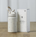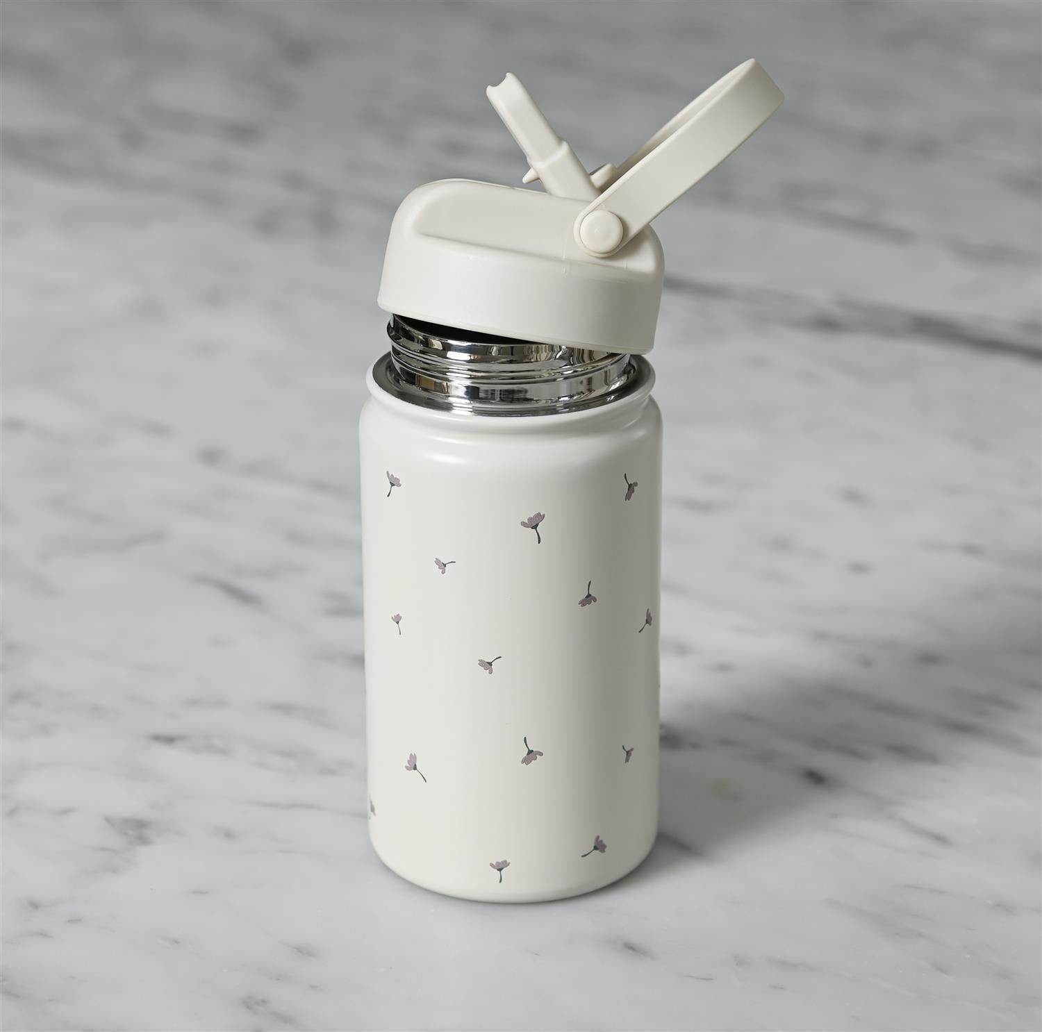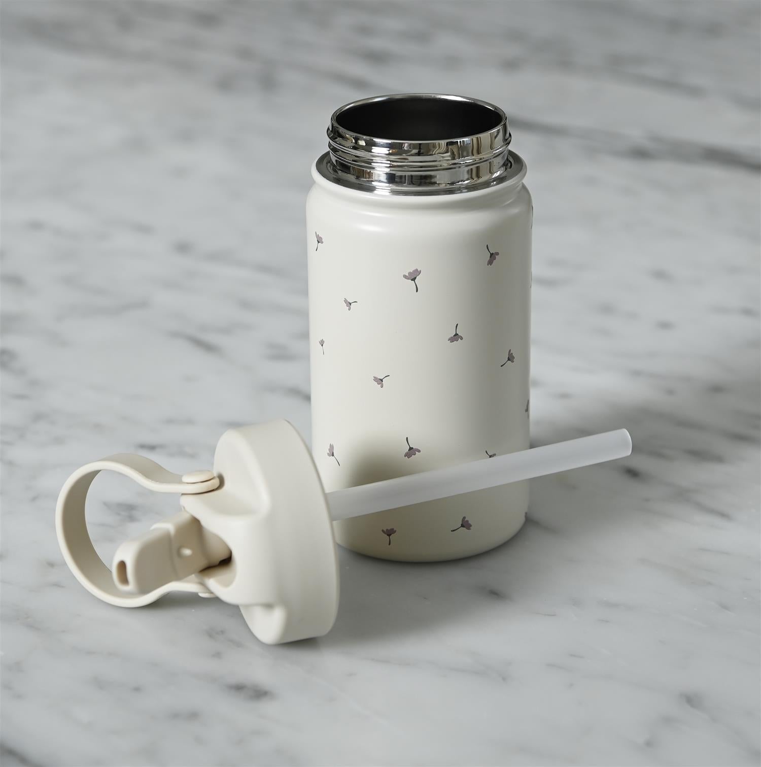 Termos og vannflaske i ett! Designet med innebygd sugerør og en gripevennlig form, perfekt for små hender. Kun håndvask – tåler ikke oppvaskmaskin eller mikrobølgeovn. Testet i samsvar med de nyeste EU-sikkerhetsstandardene. Passer fra 4 måneder. Materiale og mål: Farge: Kremfarget med blåbær mønster