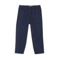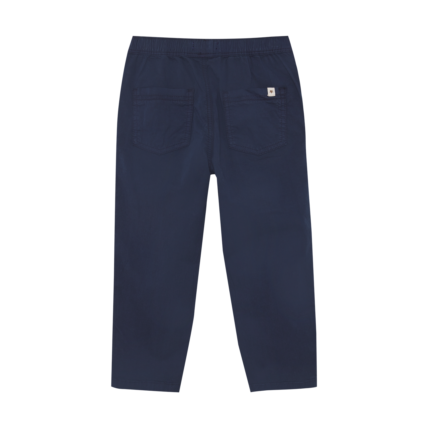 Klassiske bukser fra HUTTEliHUT. Buksene er i en dyp blå farge med strikk og snøring i midjen, samt en innvendig justerbar midje. De har et klassisk snitt med side- og baklommer.