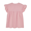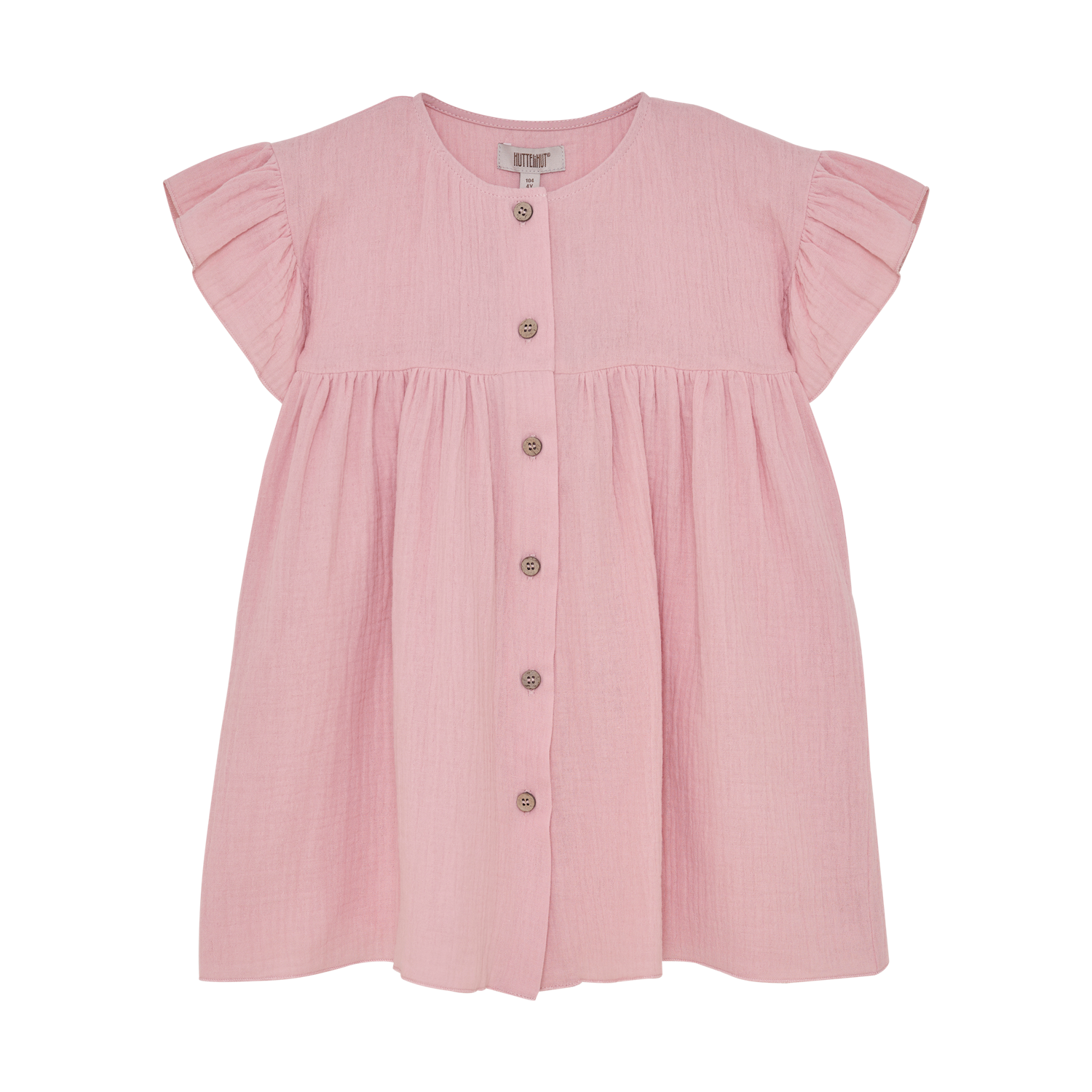 Vakker muslinkjole fra HUTTEliHUT. Kjolen er kortermet og har mange rynker, noe som gir et fint jentete utseende. Lukkes med knapper foran. Laget av 100 % bomull, som føles myk og behagelig mot huden.