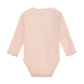 Søt ensfarget ribbet body fra HUTTEliHUT. Bodyen har lange ermer, broderi i halsåpningen, babylock i ermeåpningen og lukkes med trykknapper på skulderen og mellom bena. Laget av en utrolig myk kvalitet. Dette produktet inneholder TENCEL™-fibre. TENCEL™ er et varemerke for Lenzing AG