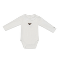 Koser seg på alle måter! Denne vakre bodyen er laget av elastisk bomull som føles myk å ta på. Den broderte figuren gir et unikt Donsje-utseende. Komplett med trykknapper langs ryggen og skrittet. Perfekt for både gutter og jenter. Kombiner den med Carson-bloomeren! Den ideelle starten på enhver minigarderobe!
