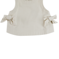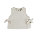 Alle sløyfer, alle smil! Veeri-toppen er et luftig sommerplagg med gjennomtenkte Donsje-detaljer. Med nøkkelhullsåpning i ryggen med knappelukking og sjarmerende sløyfedetaljer er den laget for både lek og avslapning. Enten den er kombinert med Donsje-shorts eller et skjørt, er den et must-have i varmt vær.