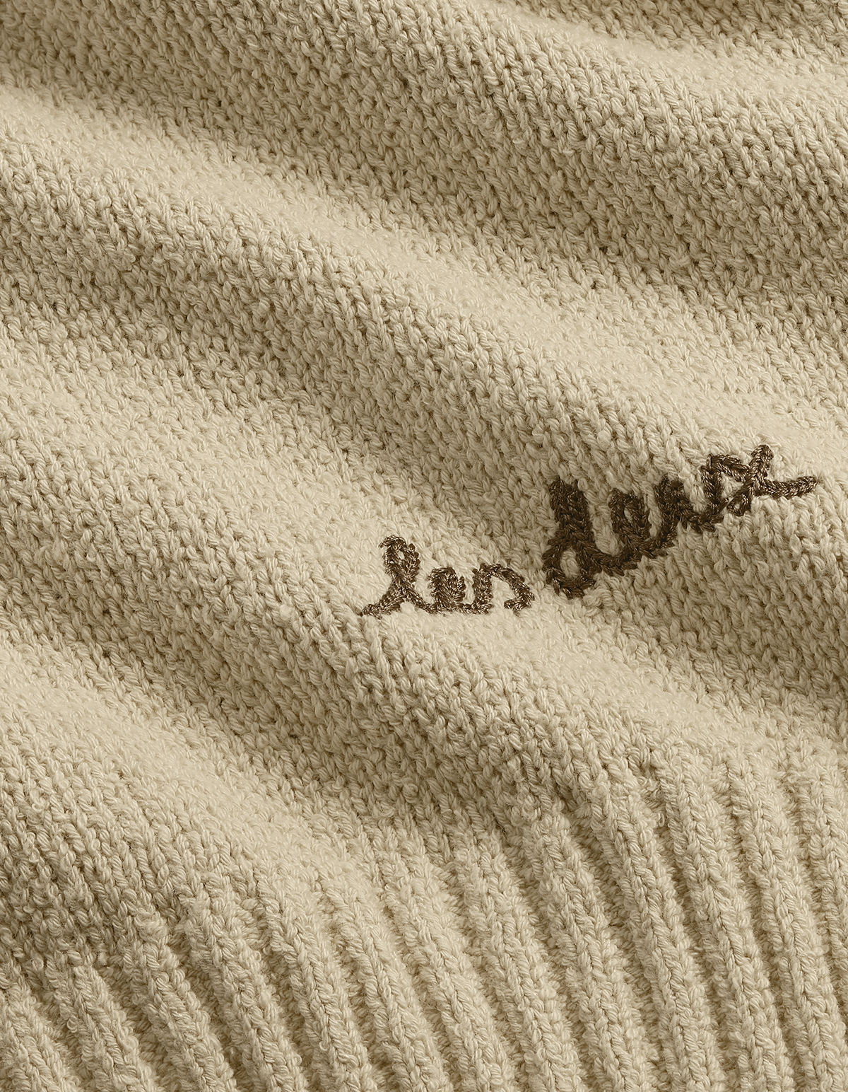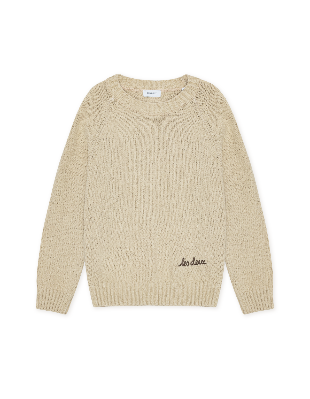 Crewneck genser i strukturert bomullsblanding med myk og behagelig følelse. Detaljert med ribbekanter og liten kontrastbroderi på falden.