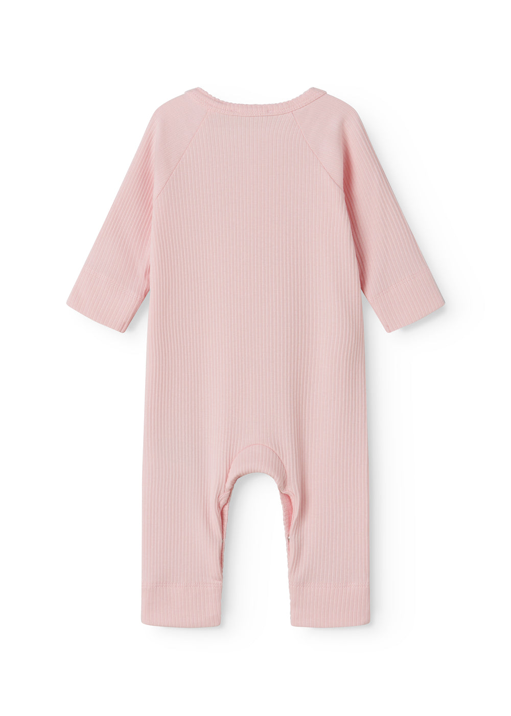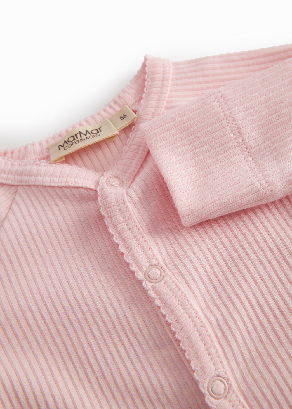 Enkel langermet heldress som kan kneppes helt fra halsen og ned langs begge bena med trykknapper for enkelt bleieskift. Heldressen er myk, holder form og farge og har elastan i seg, noe som gjør den elastisk og behagelig å ha på seg.
