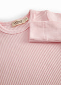 Langermet ribbestrikket body med knepping på den ene skulderen og mellom bena. Myk, elastisk og behagelig å ha på. 100% naturlig materiale og pustende kvalitet.