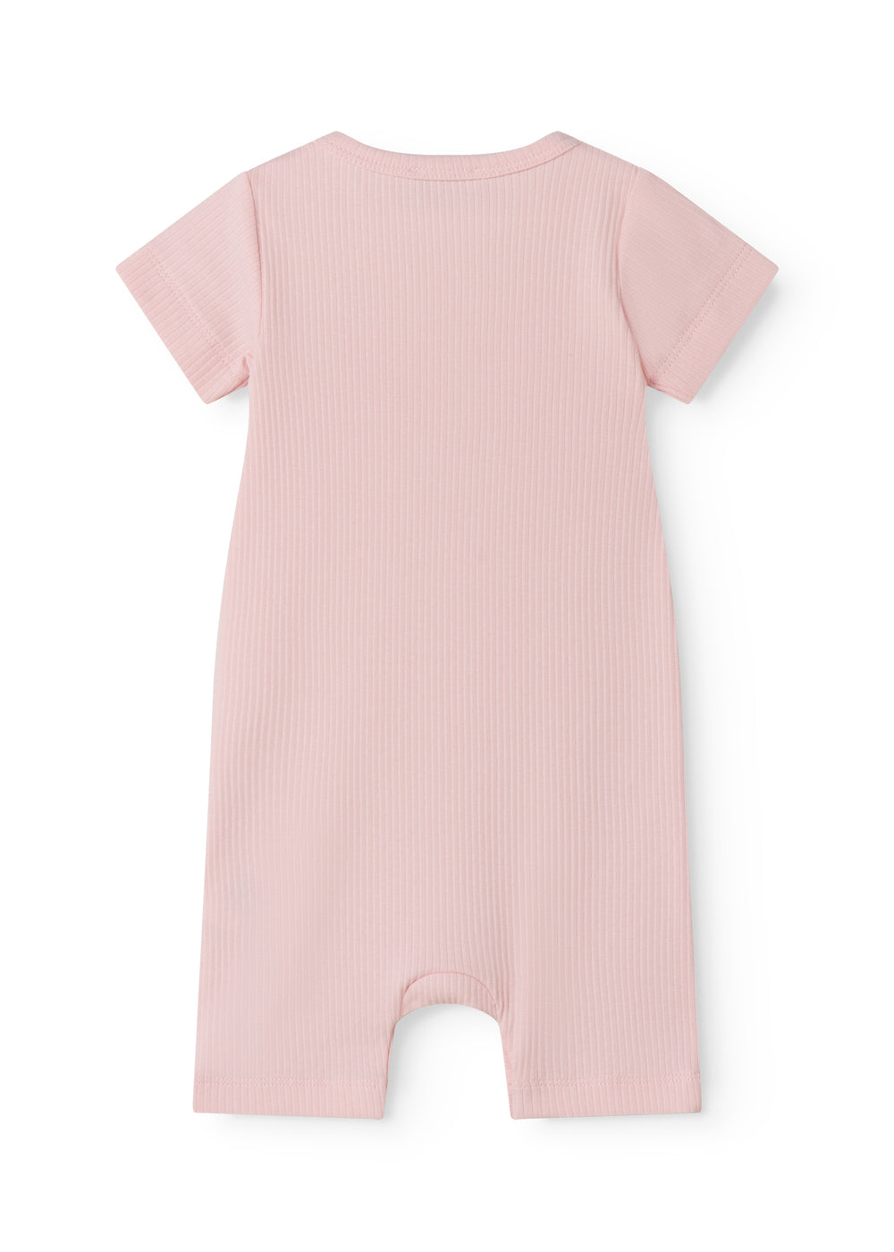 Kortermet romper med korte ben, lukkes med trykknapper på venstre skulder samt mellom bena.