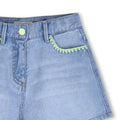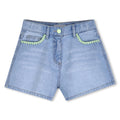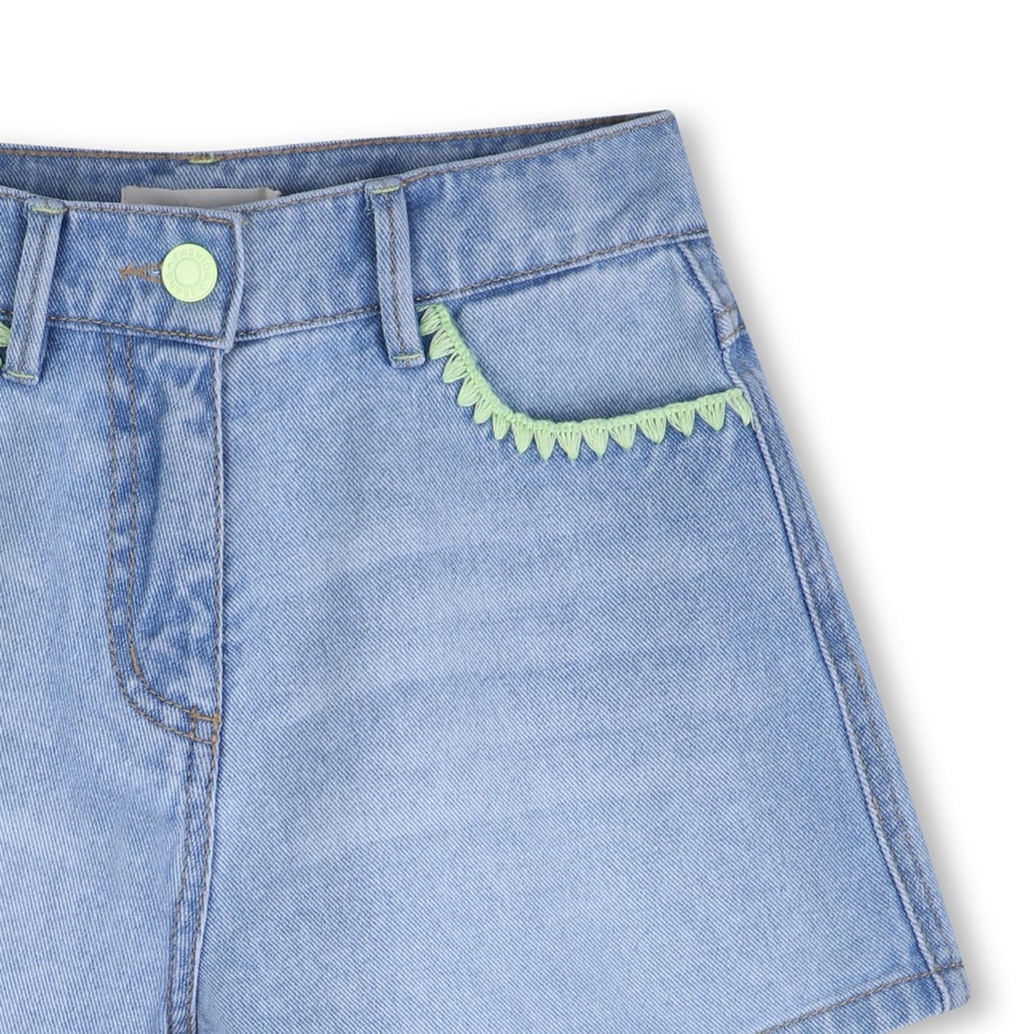 Disse BILLIEBLUSH-denimshortsene kombinerer komfort og fantasi med delikate fargerike broderier rundt lommene. Den justerbare midjen og den praktiske passformen gjør dem enkle å bruke hver dag. Den broderte signaturen på ryggen gir et raffinert og gledelig preg, tro mot merkets sjarmerende univers.